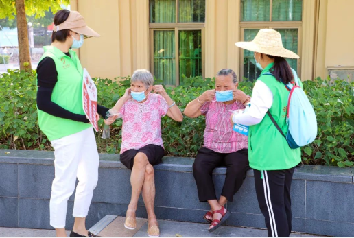 预防疫情的第一步就是佩戴好口罩。在党建公园,志愿者们身穿绿马甲,手拿宣传标语,向没有佩戴口罩的市民群众免费发放口罩,并耐心劝导他们出门一定要记得戴好口罩。