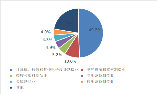 从行业看,2021年在规模以上工业企业中,R&D经费支出超过10亿元的行业大类有6个,分别是计算机、通信和其他电子设备制造业(213.64亿元),电气机械和器材制造业(43.48亿元),橡胶和塑料制品业(22.8亿元),专用设备制造业(21.46亿元),金属制品业(18.77亿元),通用设备制造业(17.49亿元)。这6个行业的R&D经费支出占全部规模以上工业企业R&D经费支出的83.2%,占各类企业R&D经费支出的81.3%,占全社会R&D经费支出的77.7%。