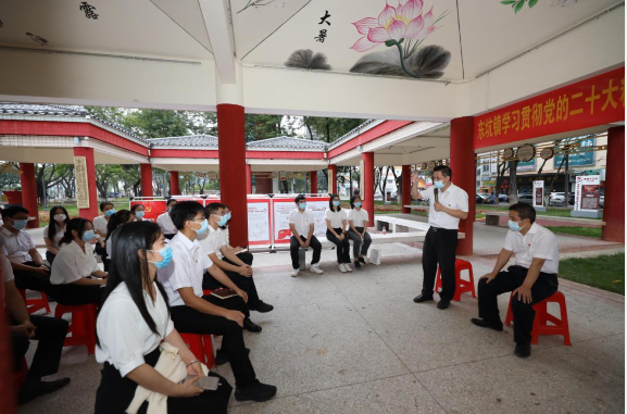 报告会结束后,王金豹还来到东坑镇党建主题公园凉亭,与该镇宣传线党员干部、镇莞邑百姓宣讲团成员面对面,就如何结合党的二十大精神讲好东坑故事、丰富宣传宣讲内容、提升宣传宣讲效果等进行互动交流。记者看到,现场气氛热烈,大家踊跃发言、提问,并结合自身工作实际,分享自己的学习体会。