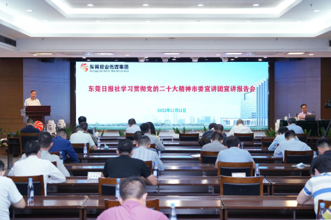 11月21日,东莞日报社举行学习贯彻党的二十大精神市委宣讲团宣讲报告会,引导党员干部把思想和行动统一到党的二十大精神上来,切实把党的二十大精神转化为高质量推进东莞日报社各项工作的具体行动和实际成效。东莞日报社党委书记、社长、总编辑张树坚主持会议并讲话。