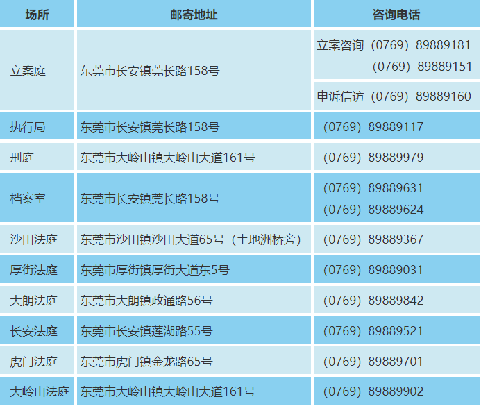 本院各诉讼服务场所邮寄地址及预约、咨询电话↓↓↓