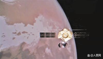 我国首次火星探测任务“天问一号”探测器从遥远火星传回一组精美图像。图为“天问一号”环绕器与火星合影。
