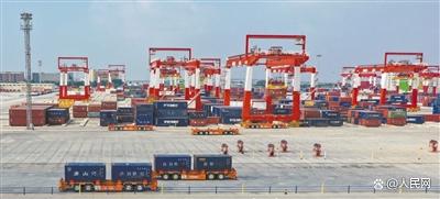 广东省广州港南沙港区四期全自动化码头正式投入运行。该码头是全球首个江海铁多式联运全自动化码头,集北斗导航、5G通信等技术于一体,创造了60多项专利,其中发明专利31项。