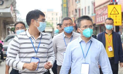 大朗镇党委委员蔡培光率驻村团队一行深入杨涌村的农贸市场、商店、出租屋、公寓等场所开展疫情防控“固垒织网”专项行动,检查各场所是否严格落实防疫措施,并向出租屋、公寓等场所负责人宣传讲解市外来(返)朗人员主动报备重要性和必要性等。