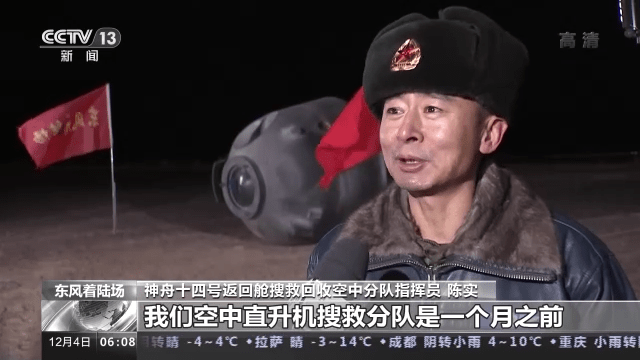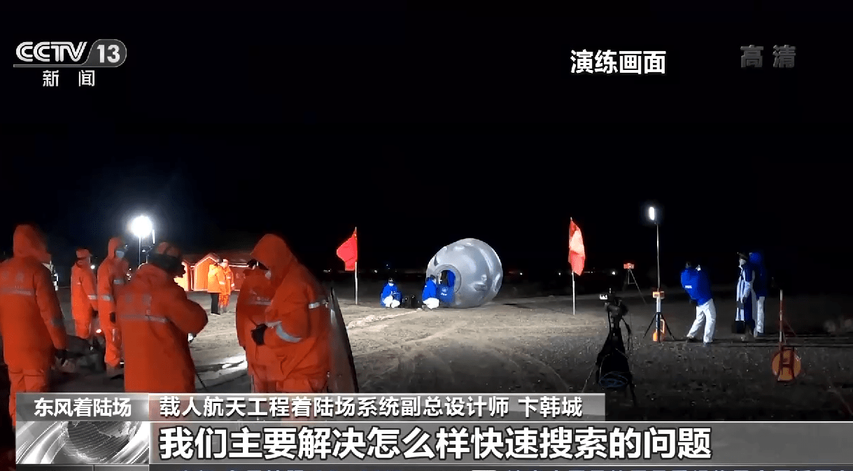 神舟十四号返回舱搜救回收空中分队指挥员 陈实:针对此次夜间搜索的特点,一个是所有的飞机都加装了大功率的探照灯;第二是对装备维护方面采取了一些保暖的设施,这些方面我们目前通过演练来看,达到的效果还是比较好的。