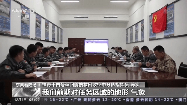 神舟十四号返回舱搜救回收空中分队指挥员 陈实:这个区域特点还是比较明显的,一是黑,大家可以看到外边特别黑;第二个是冷,目前据预报可能体感温度应该达到零下二十几度;第三个就是这个地方灰尘特别大,直升机着陆的时候,吹起的扬沙,再加上着陆灯,把整个飞行员的视线全部遮盖了,对着陆造成极大的困难。所以针对这些特点,我们前期对任务区域的地形、气象、装备,对飞行员的技术以及身体心理等方面都进行了强化训练。