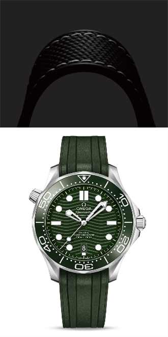 20世纪80年代,腕表的潮流之一是厚重的潜水表搭配宽大的橡胶表带。如今,橡胶表带的潮流再次回归。欧米茄从编织条纹的热带(Tropic)风格表带和贝伦(Perlon)尼龙编织表带中获取灵感,采用全新的橡胶成分和色彩。通过增加与橡胶表带融为一体的抗菌涂层,让表带更加强韧轻巧,加上明亮的配色和精致的细节,可满足潜水和正式场合的佩戴需求。