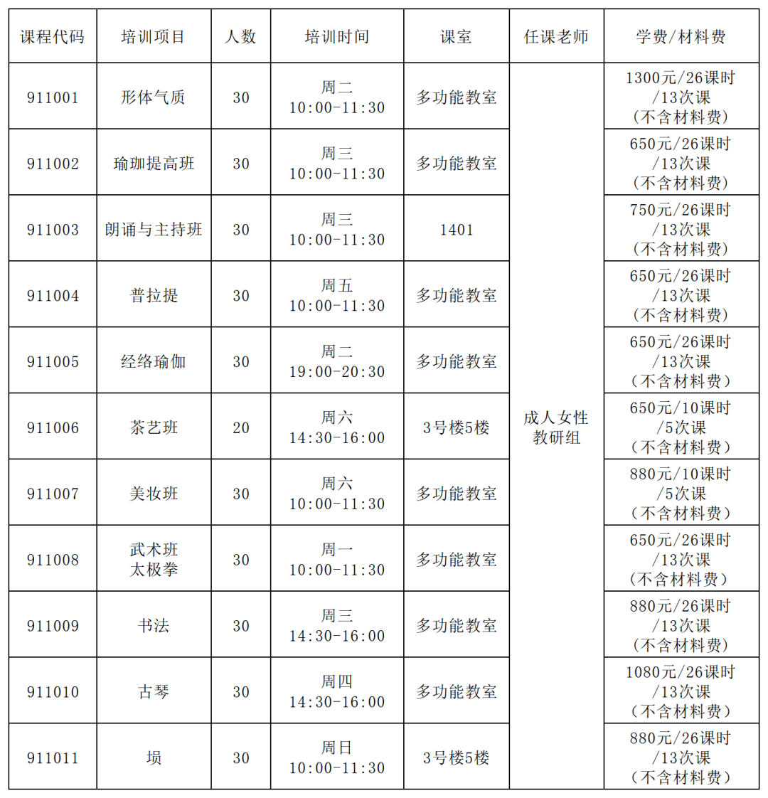 茶艺班:茶道(茶艺礼仪、茶具和泡茶用水的搭配、饮茶与健康、宋代点茶)。