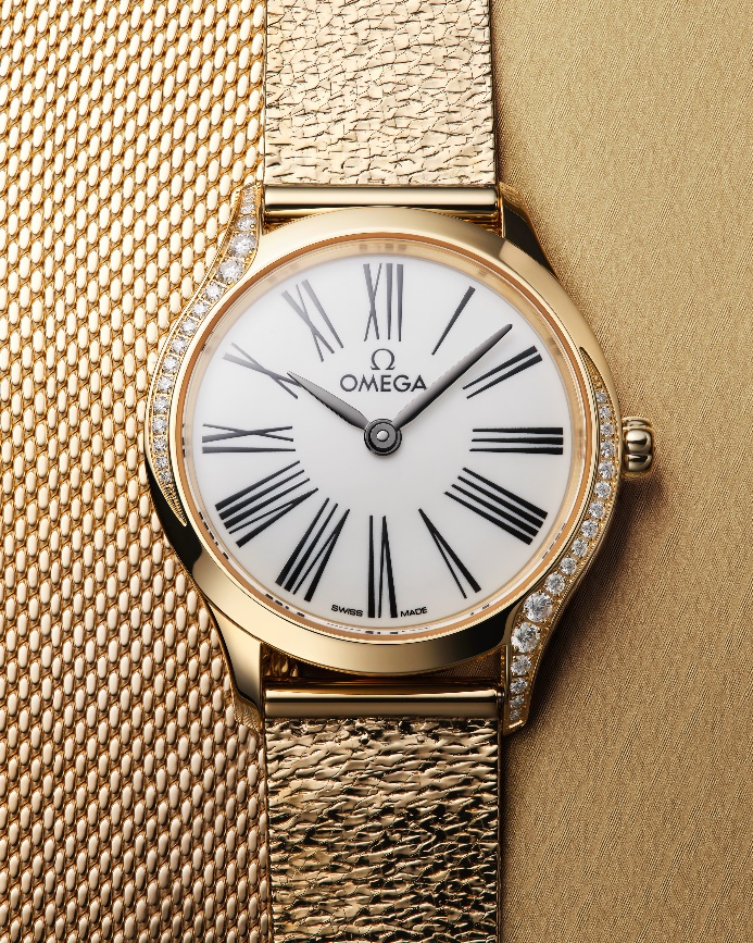 2022年,欧米茄 (OMEGA) 碟飞系列名典腕表迎来备受瞩目的全新Mini名典腕表。全新腕表的表壳尺寸仅为26毫米,对于追求小巧尺寸又独具风格的女士而言,这枚腕表可谓理想之选。欧米茄最早于1949年推出名典腕表——Trésor,意为珍宝,是指当时腕表搭载的品牌历史上重要的“30 毫米机芯”。欧米茄的30毫米机芯堪称是制表业手动上链机芯的典范之作,它是精准性能和精简结构的代名词,在业界备受瞩目。除了卓越的机芯,纤薄雅致的黄金表壳也成为名典原型腕表的经典标志。2017年,欧米茄对名典腕表进行焕新设计,在经典纤薄的风格之上提升了腕表的流线设计,呈现出21世纪现代风格的名典腕表。今年,欧米茄又推出尺寸更为精巧的26毫米名典腕表,并引入灵感源自法国经典的“茹伊印花”风格的全新表带。