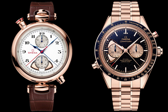 就是下面这两枚:欧米茄奥林匹克1932计时三问表,和欧米茄超霸系列计时三问表。