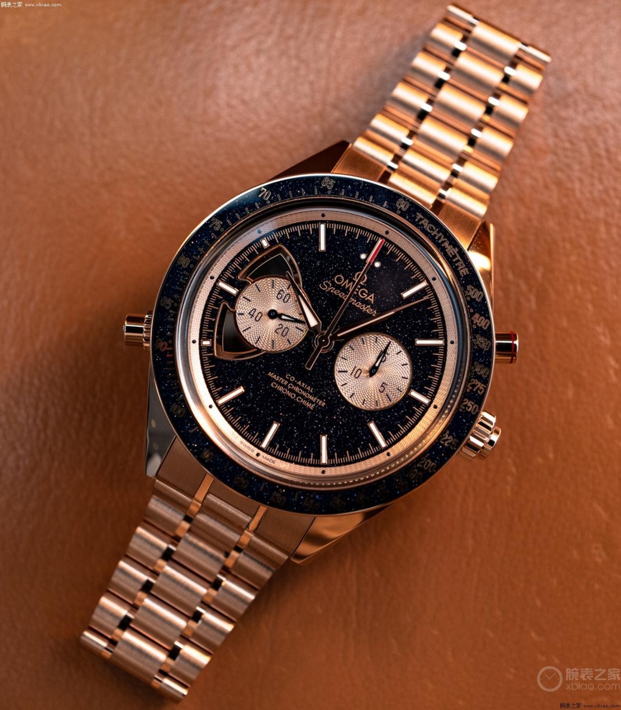 整个机芯的夹板、包括三问报时音簧,都是用欧米茄18K Sedna金制作(即欧米茄独家配比18K玫瑰金),机芯装饰配的上这枚大复杂表。并且在奥林匹克1932追针报时、超霸追针报时这两款上,都用了珐琅盘、玑镂雕刻,手表从内到外,细节到位。