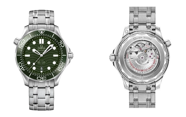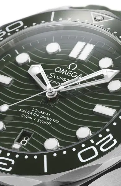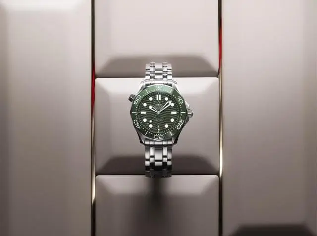 2022年,欧米茄海马系列300米专业潜水表推出全新的绿色波纹表盘,更为大胆醒目。全新表款的表壳为42毫米,采用精钢材质打造,经抛光和拉丝处理,搭配单向旋转抛光绿色陶瓷表圈,饰以由“大明火”工艺制成的白色珐琅潜水刻度,12点位设有覆以Super-LumiNova夜光涂层的圆点,在暗黑环境中呈现以绿色效果。