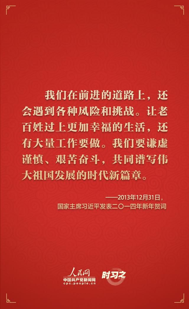 2022年12月31日晚,国家主席习近平将发表二〇二三年新年贺词。在历年的新年贺词中,习近平主席心系民生冷暖、情牵万家灯火,体现着大国领袖深厚的人民情怀。人民网·中国共产党新闻网“时习之”栏目带您一起重温习近平主席的新年贺词,感悟“人民”二字重逾千钧。