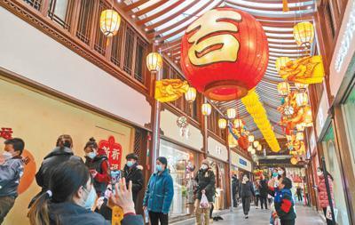1月6日晚,上海豫园商城内的兔年灯会流光溢彩,游客络绎不绝,年味渐浓。