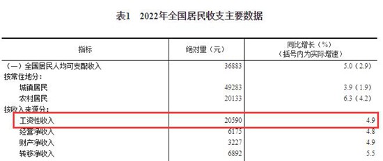 国家统计局的数据显示,2022年,全国居民人均可支配收入36883元,比上年名义增长5.0%,扣除价格因素,实际增长2.9%。