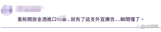 对此,有岛内网友说,大陆重新开放金酒输入,就有了这支外宣广告,瞬间懂了。↓