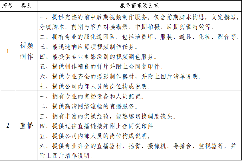 东莞报业传媒集团现征集一批具备相关资质的供应商提供视频制作和直播服务,具体要求如下: