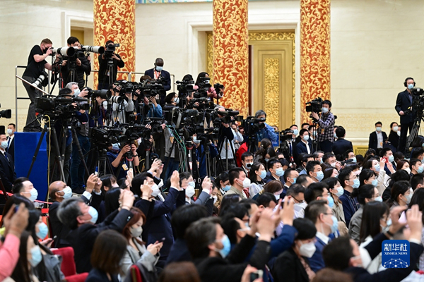 记者会在人民大会堂三楼金色大厅举行,历时约80分钟,参加采访的中外记者约500人。