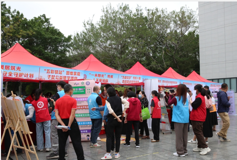 活动现场还设置了12个展示宣传摊位,通过游戏体验、宣传互动等环节,开展政策咨询、公益便民等服务,吸引了众多市民参与。