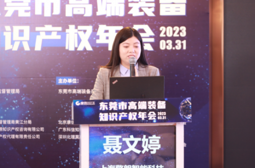在主旨演讲环节,首先由上海擎朗智能科技有限公司知识产权经理聂文婷带来《服务机器人公司IP管理》主题演讲。聂文婷借助自身多年来知识产权管理的从业经验,从专利、商标和域名三大板块介绍了保护知识产权的运营管理经验,理论性、针对性、指导性和实用性都很强。