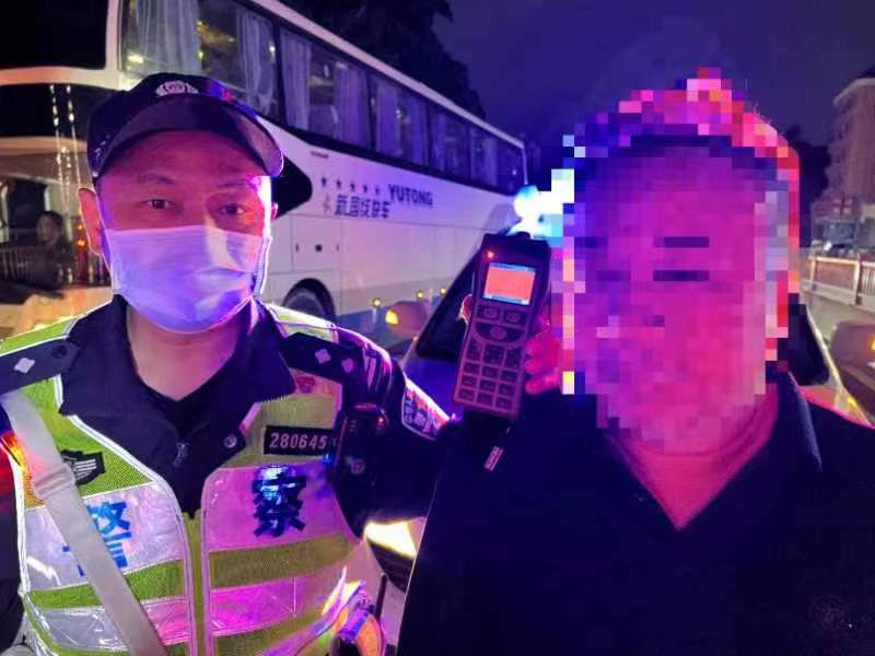 4月9日,东莞交警企石大队在企石镇江南大道设卡开展涉酒驾驶查处行动。是日22时28分许,王某靠近执勤点进行酒精测试时,呼气棒立马响起“警报”。
