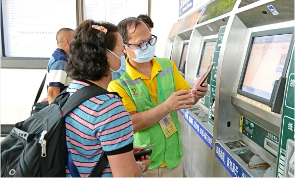 协助旅客购票、搬运行李、指引进(出)站……近日,穿着绿马甲的志愿者们纷纷变身“火车莞家”,在人群中穿梭,为进出站旅客提供贴心服务。