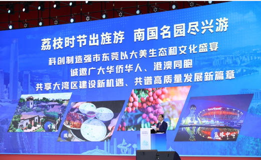 5月17日,2023华侨华人粤港澳大湾区大会在广东江门开幕。东莞市委副书记、市长吕成蹊化身推荐官,向广大侨胞侨商推介东莞。