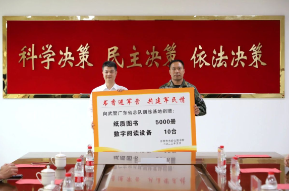 为开展军民共建活动,弘扬文化拥军精神,丰富部队官兵文化生活,助力军地文化融合发展,5月19日,大岭山镇党委主要领导率队前往武警广东省总队训练基地,开展“书香进军营”军民共建活动。