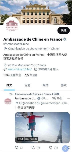 3月20日,由95后女生@凌云仗剑走天涯与@碰碰彭碰彭在巴黎铁塔下共同演绎的“95后女孩巴黎街头梦幻联动点燃中国红”视频在国内外社交媒体上火爆出圈。