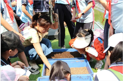 孩子们跟随讲解员,通过了解现阶段我国垃圾制造、分类现状,学习“无废城市”建设的重要性、紧迫性。在黑水虻处理设施车间,孩子们了解到厨余垃圾无害化处置原理,并通过观看黑水虻处置技术科普视频,对比分析新型处理工艺与现阶段餐饮垃圾主流的厌氧消化处理工艺的优缺点,深入了解黑水虻处置技术的现状与发展情况。还通过现场体验生态农业种植等,加深对黑水虻用途、价值转化情况等了解。