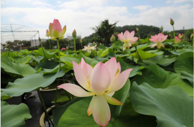 基地的盆栽荷花将按花期和品种的不同分两批次移栽到产业园,这样让游客在荷花节期间看到荷花盛放的场景,提升游玩体验,又能确保整个夏季都有荷花盛开。