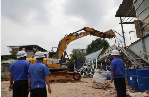 当天上午,在当事人逾期仍未履行自拆的情况下,为有效预防和遏制各类安全问题隐患发生,寮步镇“两违”办对三处违法搭建物进行强制拆除,此次拆除行动共出动工作人员65人次,挖机1台,拆除面积为2347.58平方米。