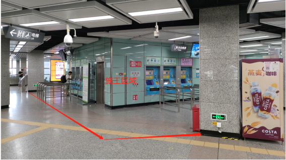 围蔽期间,地铁站全部自动售票机临时停用,改为人工售卖单程票,需要购买单程票的乘客,请前往临时票亭购票。为节省您的出行时间,建议您使用扫码支付进站乘车。