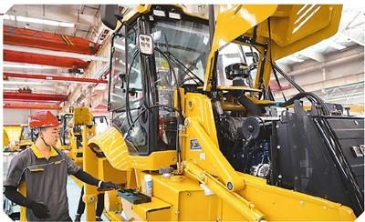 山东自贸试验区青岛片区的雷沃重工集团有限公司的生产线上一派繁忙景象。张进刚摄(人民视觉)