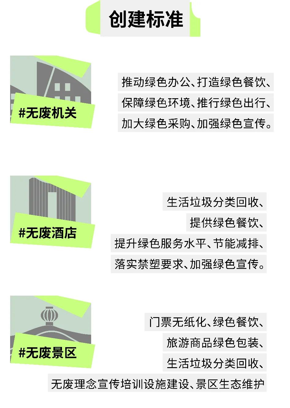 总结验收(2023年10月-12月):通过初审-初评-认定-公示流程,形成2023年“无废机关”“无废酒店”“无废景区”共150个首批“无废细胞”名单,市“无废城市”建设工作专班将组织对上述“无废细胞”进行公示、挂牌,各有关部门形成创建经验总结并渐次推广,逐步实现全面覆盖。