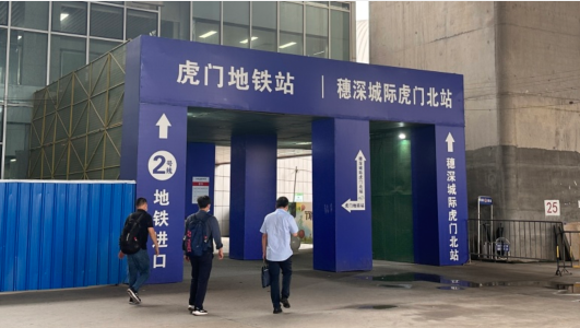2号线虎门火车站B出口外围蔽施工 出口实行客流控制只出不进
