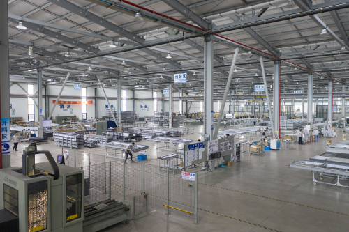 工厂采用立体构造,搭建立体型材仓库,包括专属配件仓库、五金仓库、仓储车间等区域,与各大生产车间形成紧密供给关系,有效保障系统下单后24小时内生产材料到达车间生产。基地仓库更是拥有2000万五金储备、1000万辅材和500吨型材储备,足以供给5万㎡门窗产品使用。而基地本身采用被动式节能设计,利用太阳能、太阳辐射、风能等自然能源,促进基地实现节能减排。