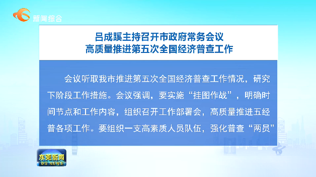 会议听取我市推进第五次全国经济普查工作情况,研究下阶段工作措施。会议强调,要实施“挂图作战”,明确时间节点和工作内容,组织召开工作部署会,高质量推进“五经普”各项工作。要组织一支高素质人员队伍,强化普查“两员”培训,保障普查工作资金,研究奖惩办法,调动经济普查工作积极性。要加强统筹协调,形成工作合力,将日常经济调度与经济普查工作同步推进,保证数据真实、准确。