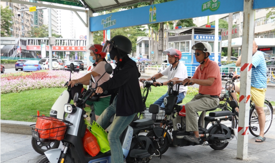 在虎门大道东莞市滨海湾中心医院红绿灯路口,交警对过往电动自行车驾驶人开展交通安全现场劝导,针对部分电动自行车驾驶人不戴头盔或不将头盔带子系好、不按规定车道行驶、闯红灯、骑行时打伞遮阳等交通违法行为进行劝导,提醒他们要自觉遵守交通规则,安全文明出行。交警还向电动自行车驾驶人派发“车尾标识反光贴”,告知其该反光贴的作用,并帮助其粘贴反光贴。