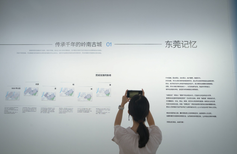 在街坊议事厅,你可以通过一张张老照片充实东莞的记忆。项目通过展出摄影师陈锦波珍藏的老照片,为观众还原东莞昔日的繁荣景象与真实的生活气息。而在项目的历程时间轴里,公众还可以直接感受莞城正在发生的改变。