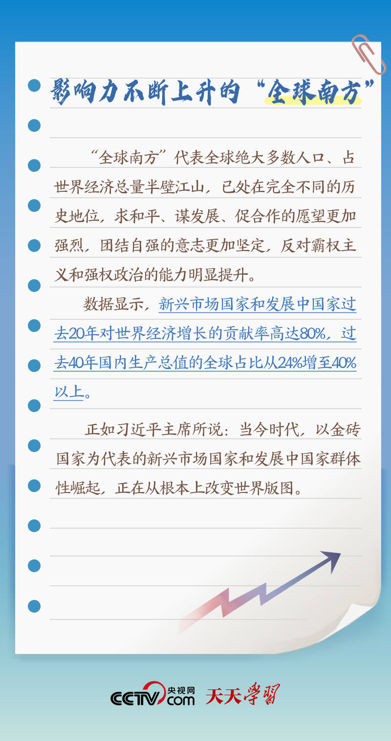 天天学习“作为发展中国家、‘全球南方’的一员,中国始终同其他发展中国家同呼吸、共命运”;“中南作为‘全球南方’天然成员,更要团结一致,共同呼吁扩大发展中国家在国际事务中的话语权和影响力”;“提升‘全球南方’国家在全球治理中的代表性和发言权”。