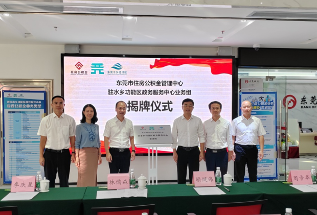 9月26日,市住房公积金管理中心驻水乡功能区政务服务中心业务组揭牌成立,标志着住房公积金业务正式进驻水乡政务服务中心。东莞水乡首个住房公积金业务办理点的揭牌,不仅大大方便了水乡企业、群众“就近办”“更易办”,更是水乡功能区营商环境持续优化的又一里程碑。