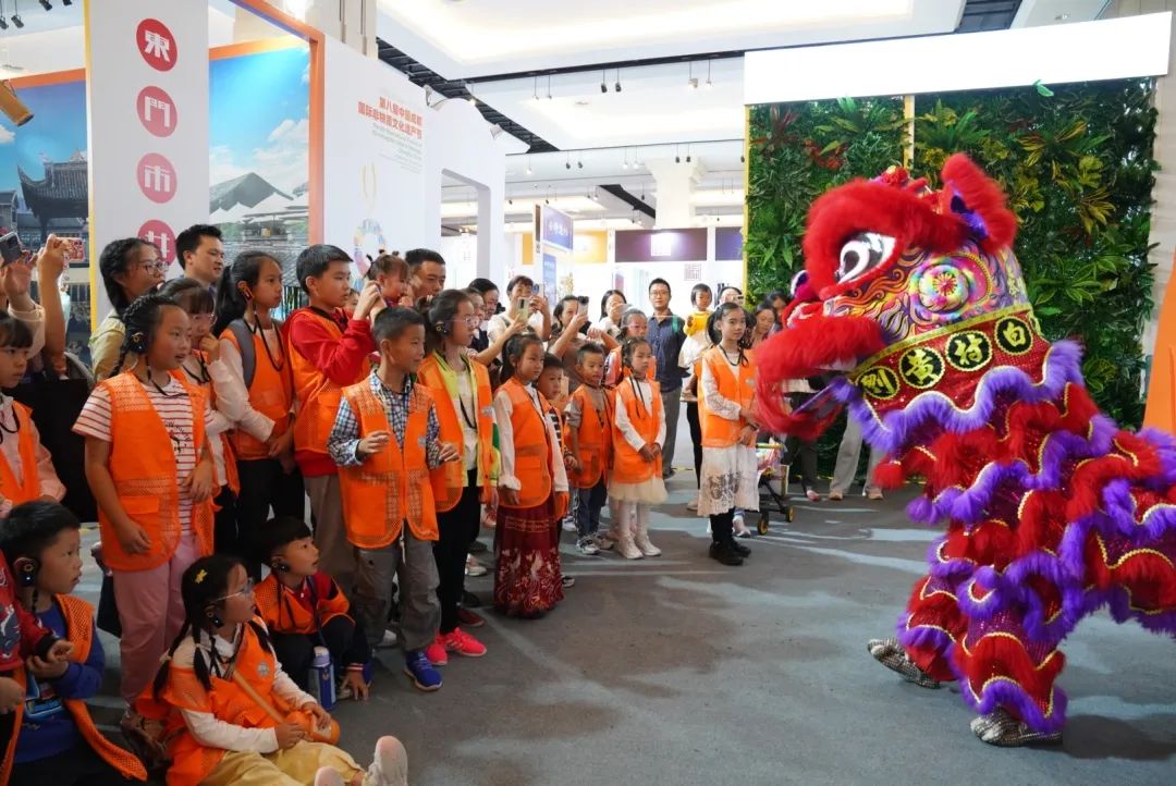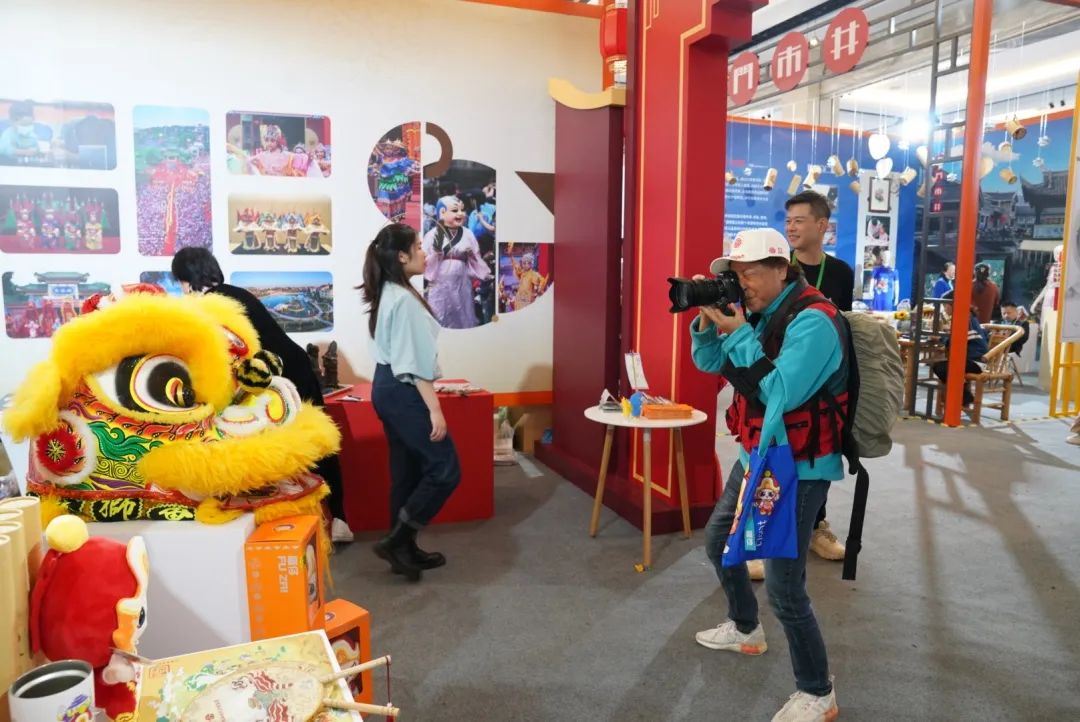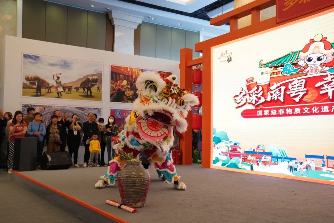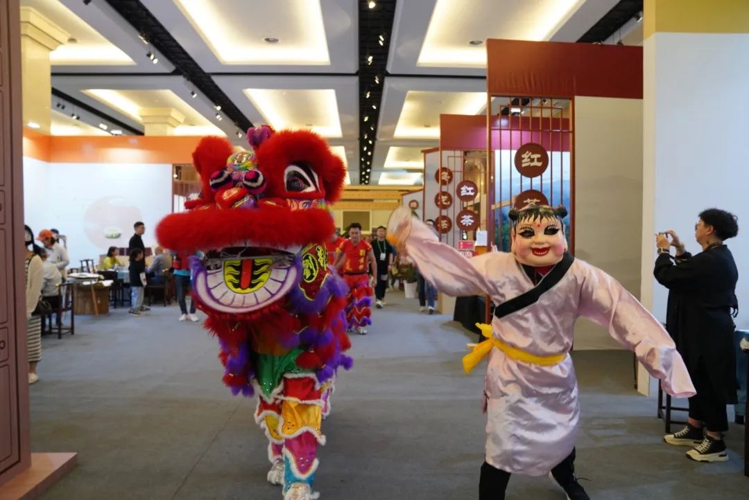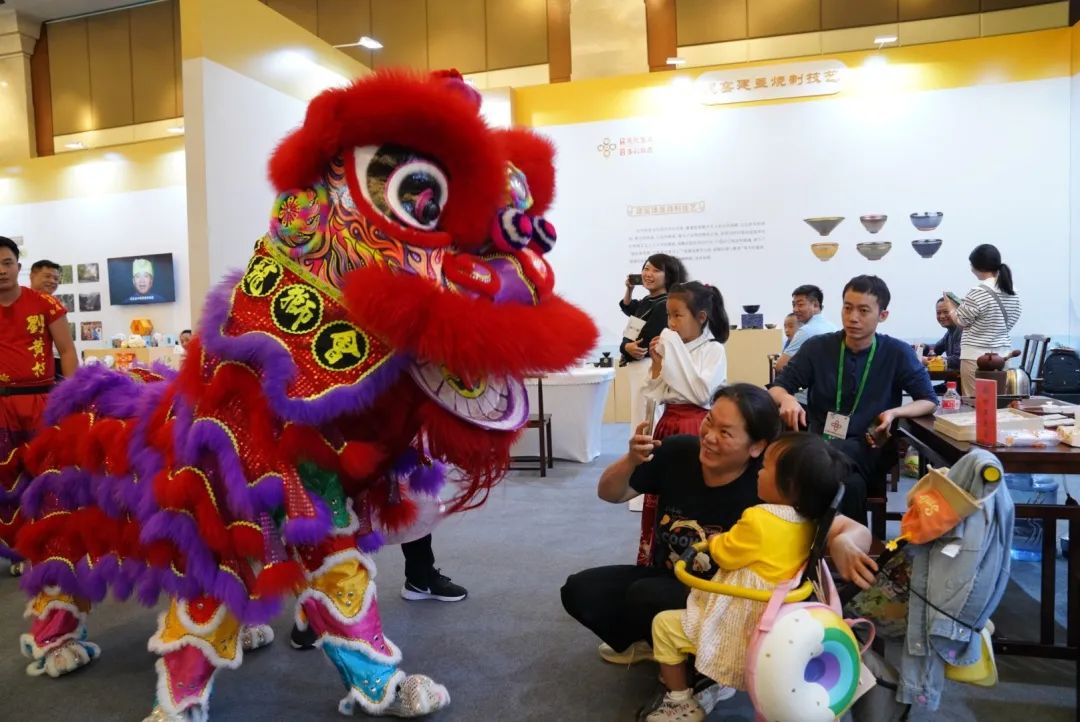 在展馆的舞台上,醒狮队也带来了多场专场表演,让现场观众看得入迷。“这个醒狮表演跟我看过的很不一样,他们模仿了狮子喝酒后的醉态,特别生动有意境。”来自四川的摄影爱好者郭阿姨称。