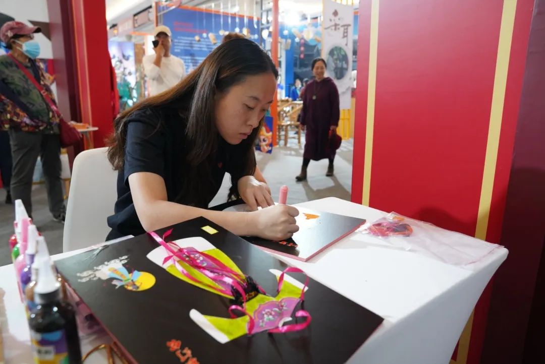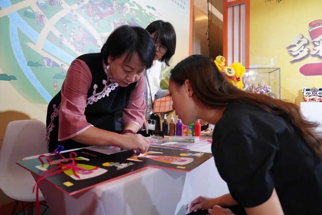 除了热闹的醒狮表演,不少观众也对绸衣灯公情有独钟。展会期间,绸衣灯公制作体验活动吸引了近100人参与体验,其中很多是家长带着小朋友来体验。