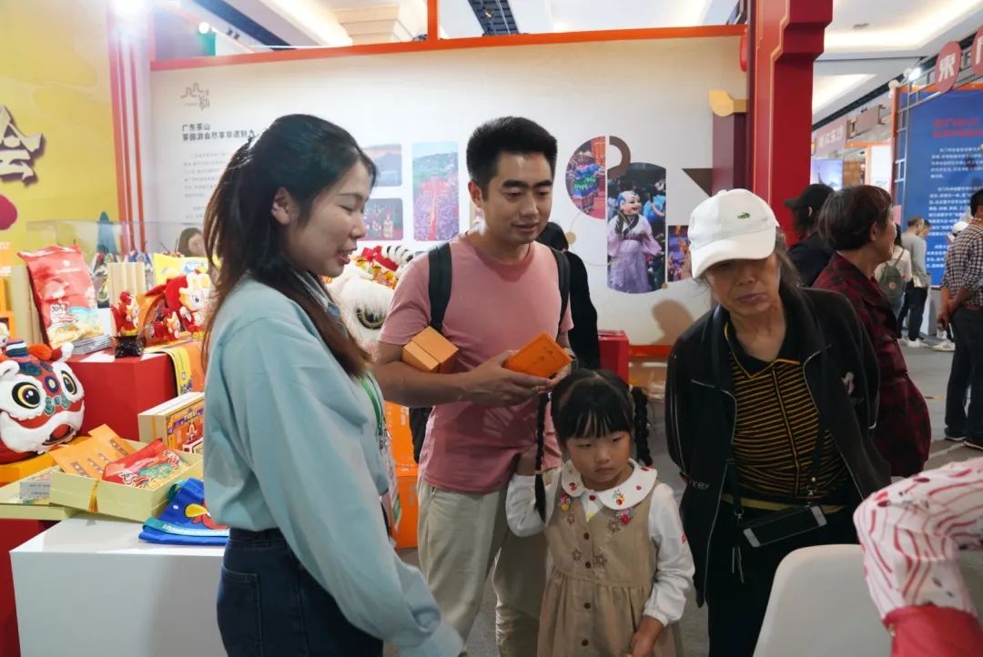 茶山非遗凭借浓厚的岭南特色和丰富的文创产品,得到了大家的青睐。现场工作人员还向观众派发茶园游会宣传手册和茶山旅游手册,向观众推介茶山文旅资源。