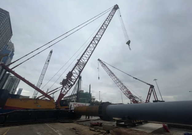 近日,穗莞深城际皇岗口岸站框架逆作段首根钢管柱顺利吊装,为下一步主体结构施工奠定坚实基础。