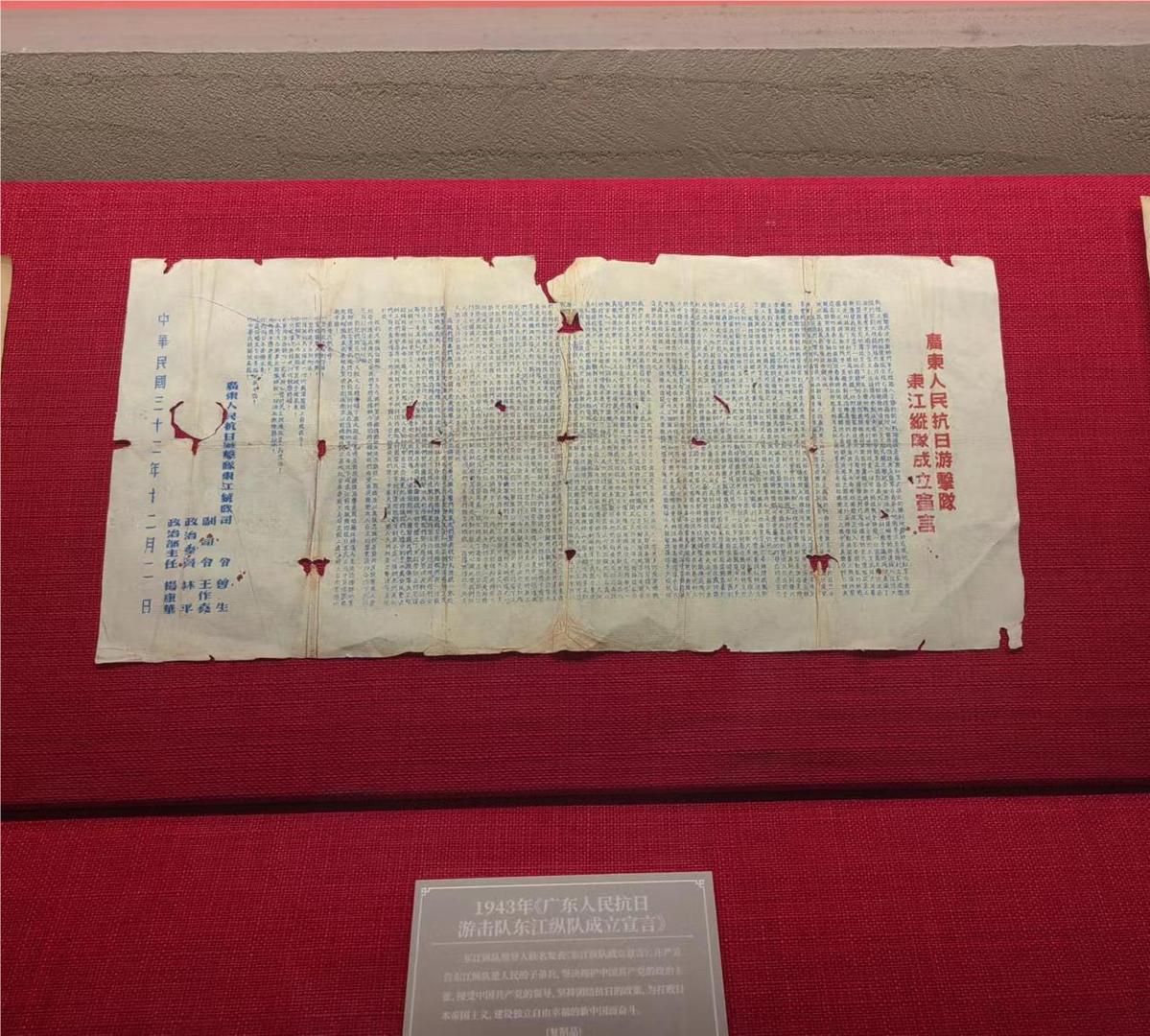 在广东东江纵队纪念馆,静静地陈列着一份《广东人民抗日游击队东江纵队成立宣言》。80年时光浸透的泛黄纸页,依然向世人传递着当时鼓舞广东敌后抗日军民的好消息——1943年12月12日,广东人民抗日游击队东江纵队成立。