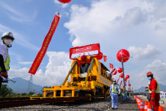印尼雅万高铁动车走行线顺利铺设 4月20日,随着第一根500米长轨在印度尼西亚西爪哇省万隆县雅万高铁动车走...
