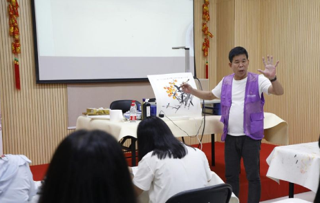 5月22日晚,抢到30个培训名额的“幸运儿”跟着从事文化馆美术、文学创作多年的职业画家黄有荣老师,学习国画的基本技法,并临摹作画。