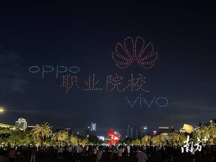 “一技在手,一生无忧”“东莞职业教育活动周”“致力培养莞邑现场工程师”……5月29日晚,一场炫酷的大型无人机秀点亮东莞上空。500架无人机通过不断变换阵型,动态呈现出全国职业教育活动周logo,东莞教育logo,东莞地标建筑,华为、腾讯、比亚迪等校企合作企业logo,现场工程师典型工作场景等画面,直观生动地展现出东莞市职教活动周的特色特点和职业院校师生的专业技能。